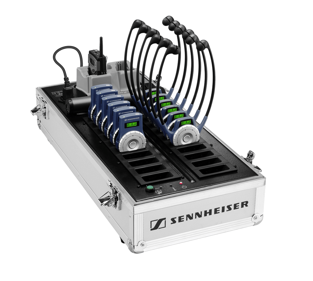 Sennheiser EZL 2020-20L - кейс для зарядки и транспортировки, разработанный для максимально удобного использования. Он является одновременно и местом хранения всего оборудования, и зарядной станцией для приемников и передатчиков экскурсионной системы Tourguide. В кейсе предусмотрено двадцать зарядных отсеков для приемников HDE 2020-D или EK 2020-D и два зарядных отсека для передатчика или его аккумуляторного блока. По-настоящему впечатляющей особенностью зарядного кейса является кнопка «Копировать». Все, что вам нужно сделать, это настроить один приёмник на правильный канал, нажать эту кнопку всего один раз, и все остальные приёмники в кейсе сразу же настроятся на тот же канал.