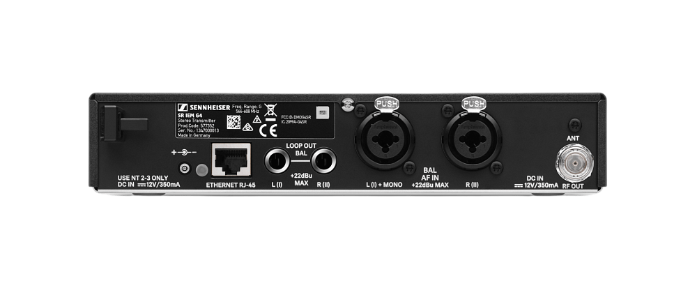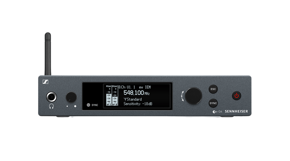 SR IEM G4 - полурэковый стереопередатчик в цельнометаллическом корпусе с органическим светодиодным дисплеем для полного управления, обеспечивающий четкость звука на всех частотах и предназначенный для ежедневного использования на сцене с мониторинговыми наушниками для мониторинговых радиосистем Evolution Wireless G4.