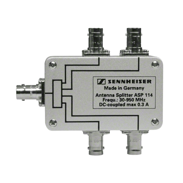 Sennheiser ASP 114 – пассивный антенный сплиттер, предназначенный для распределения сигнала одной антенны сразу на четыре приемных устройства. Он оптимизирует работу многоканальных беспроводных систем, позволяя подключить большее количество приемников без необходимости установки нескольких антенн.