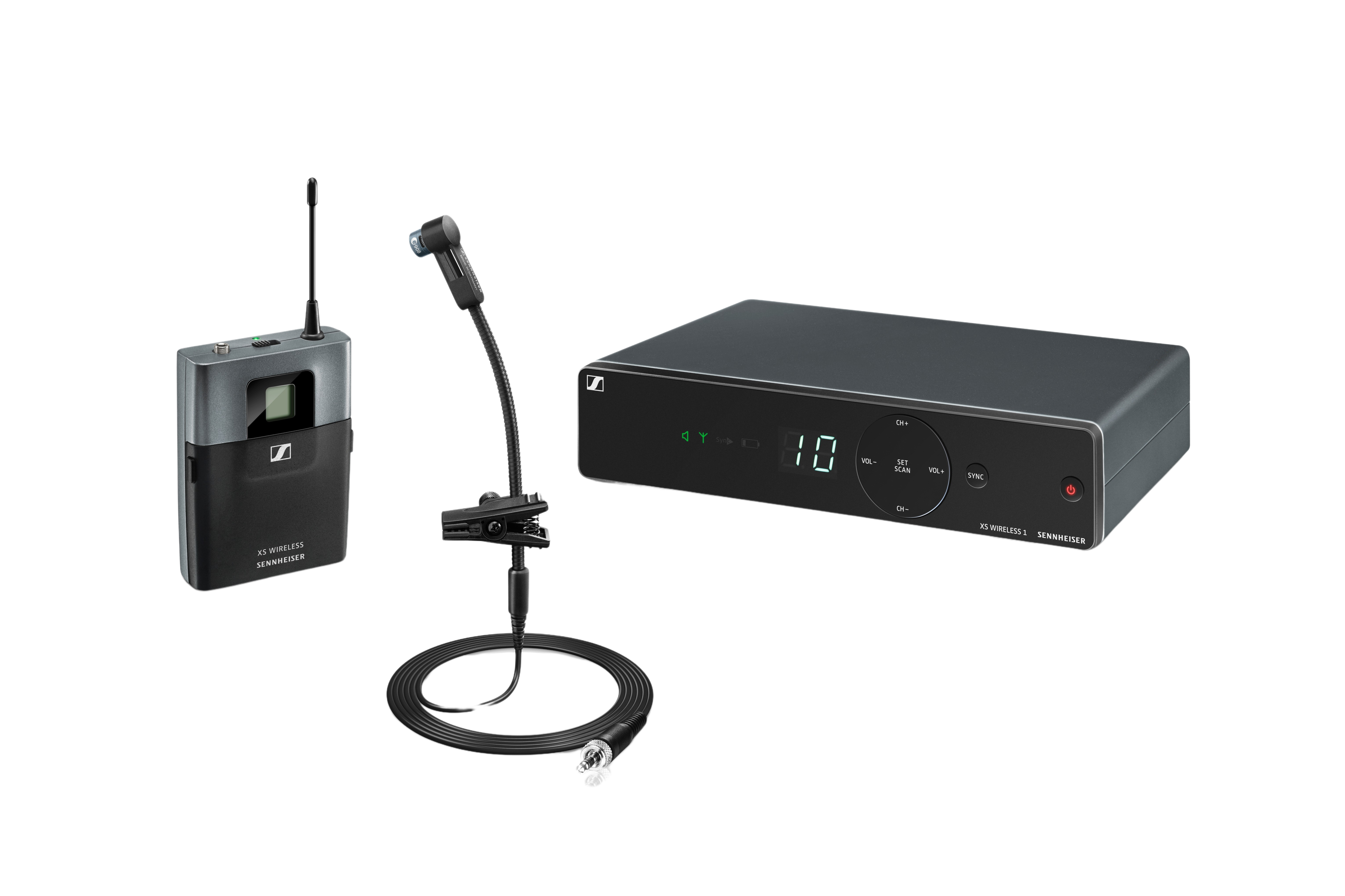 Инструментальная РЧ-система, 614-638 МГц, 10 каналов, настольный приёмник, поясной передатчик, конденсаторный микрофон на гибком держателе e908T.