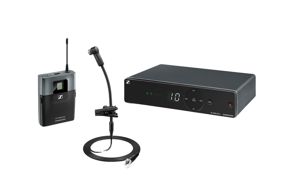 Беспроводной инструментальный комплект. Включает (1) передатчик миниатюрный SK-XSW, (1) E908 T микрофон "гусиная шея" (кардиоида, конденсаторный), (1) Стациональный приемник EM-XSW 1 с внутренними антеннами и (1) NT 12-5 блок питания, диапазон частоты: BC (670-694 МГц)
